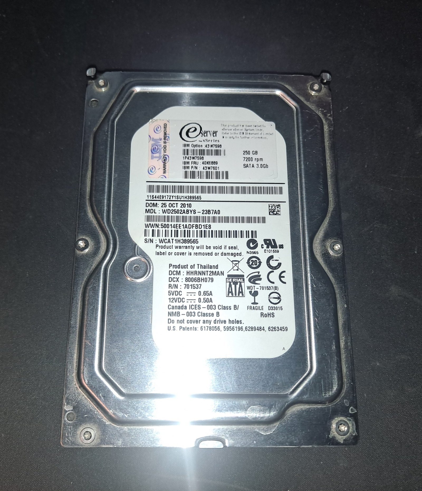 Disque dur Western Digital 3.5″ sata 250 Go WD2502ABYS